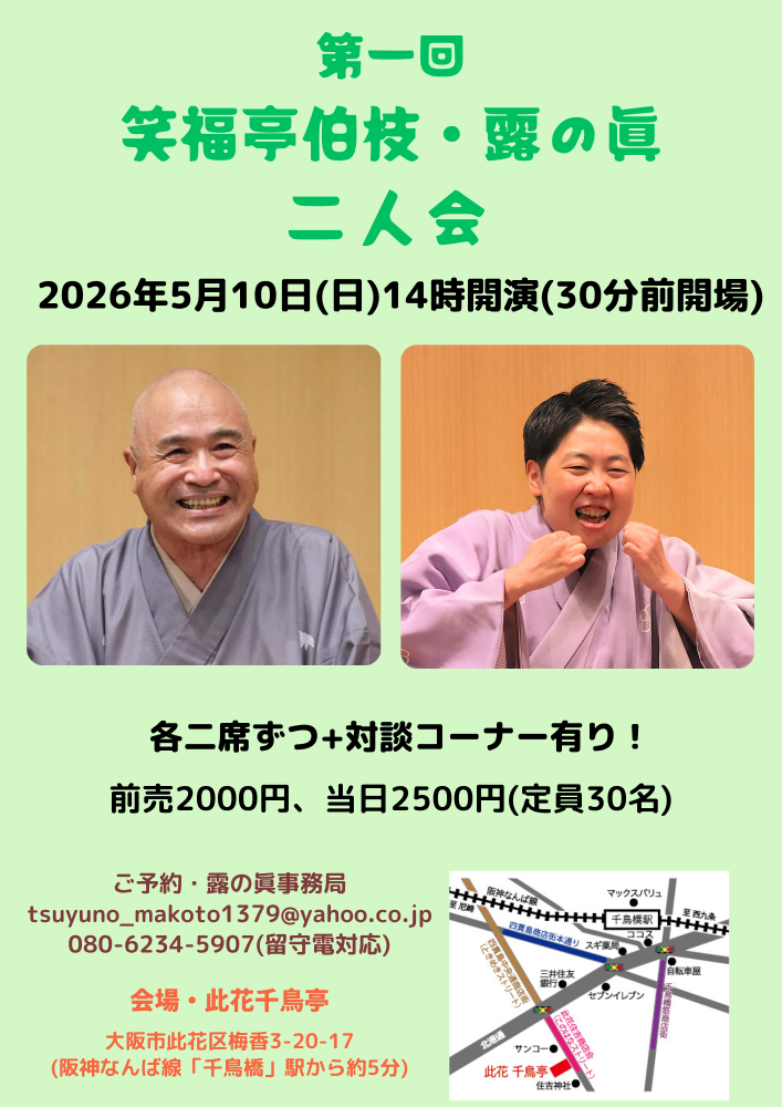 (※私主催の落語会のご案内になりますこと、重ね重ねご了承ください)